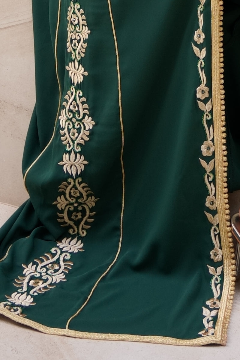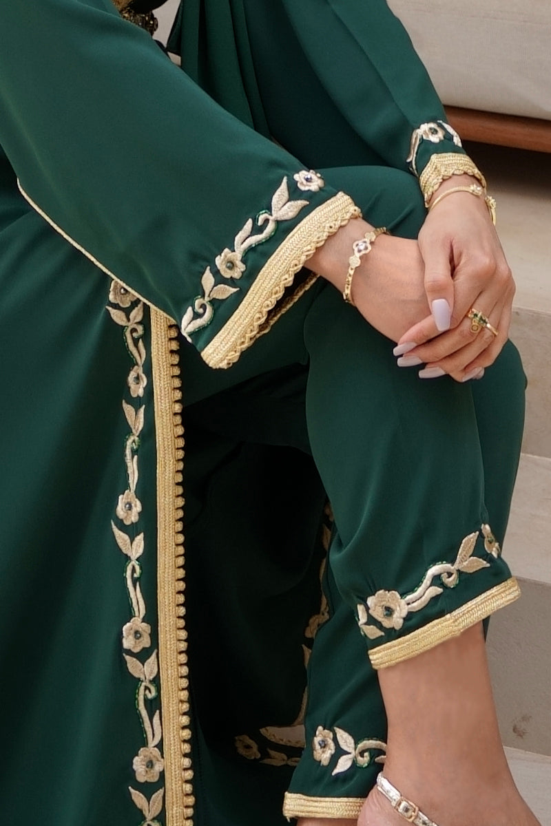 The embroidery runs throughout the entire caftan, creating a visual harmony.