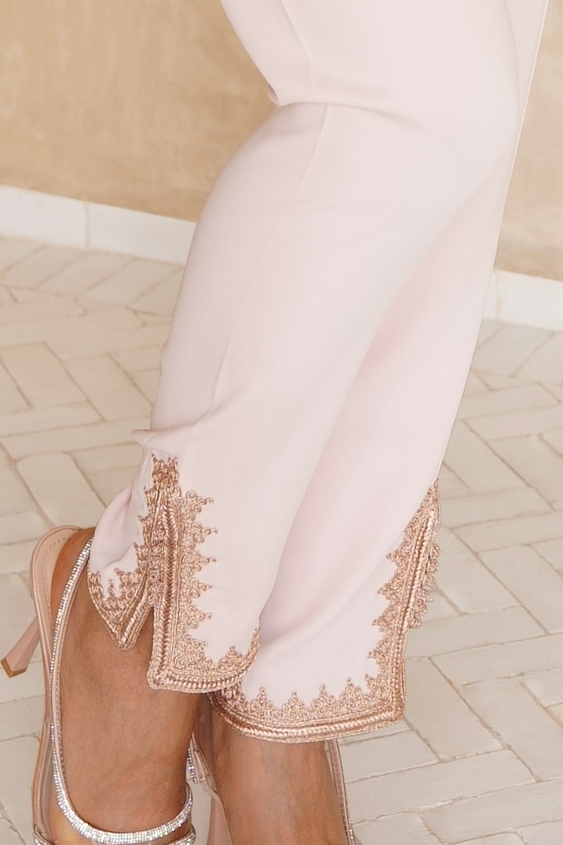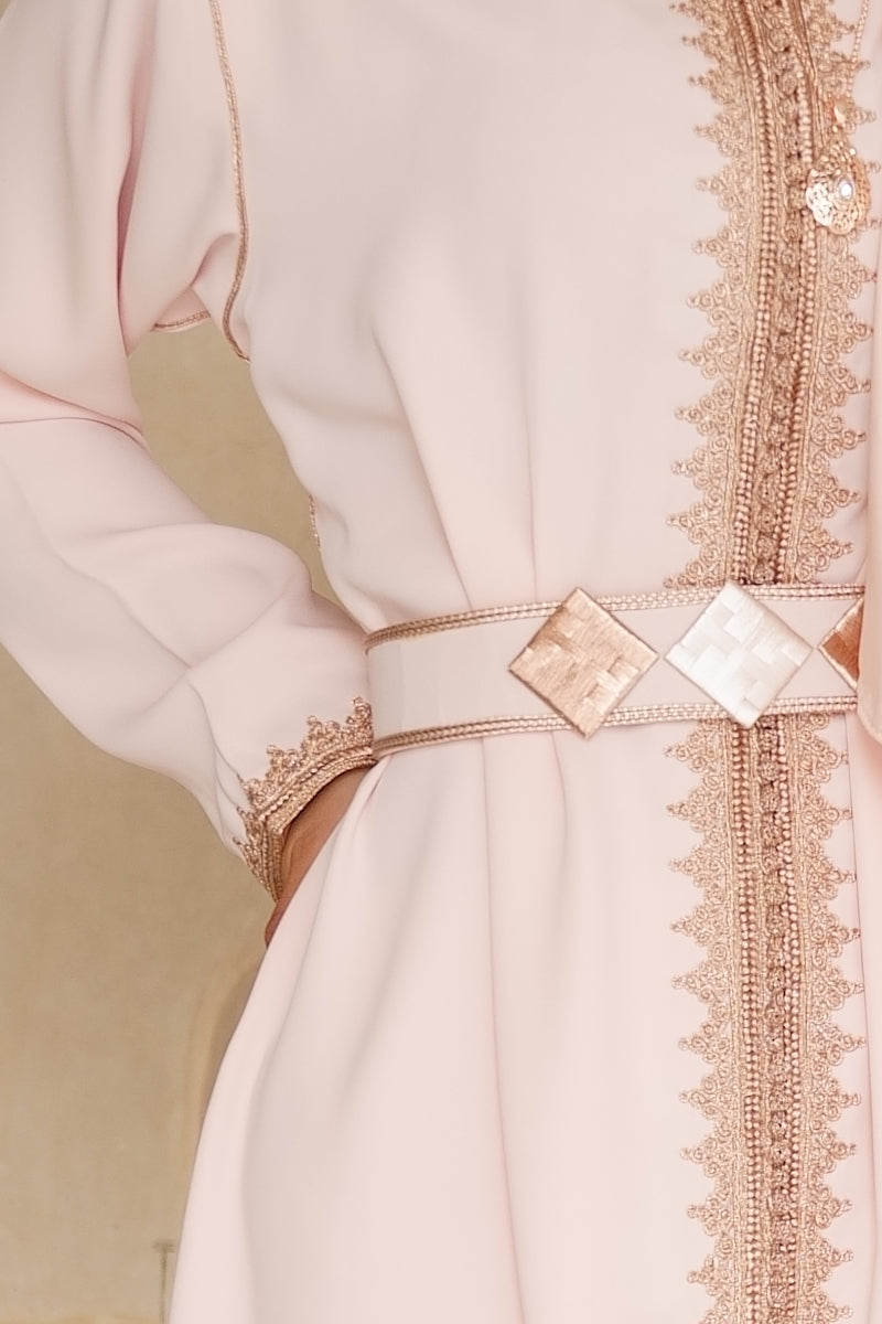 The Jabador Sahar is a timeless piece. Deftly merging Beldi style with contemporary touches, it embodies subtle refinement. Every aspect of this piece, from the delicate tone of the fabric to the bronze embroidery and the belt adorned with three diamonds, is a testament to the attention to detail.